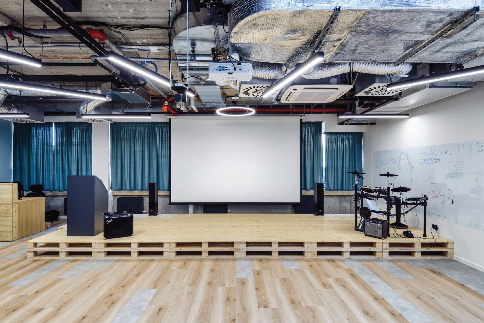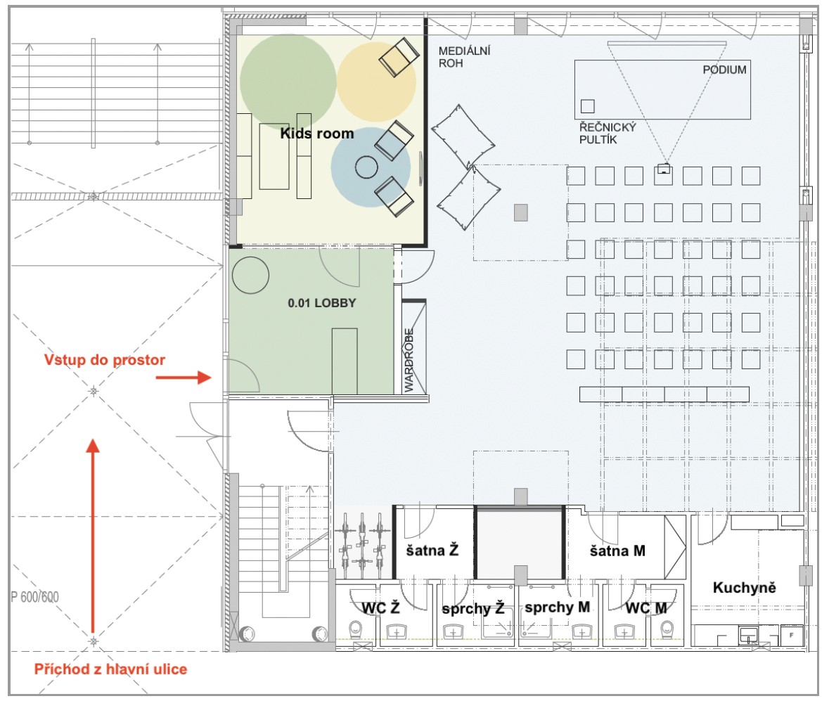 Nabízíme multifunkční prostor s pódiem, projektorem, kamerou a internetem. Vhodný pro konání večírku, brunche, workshopu, přednášky či online webináře. Celková plocha je 210 m².