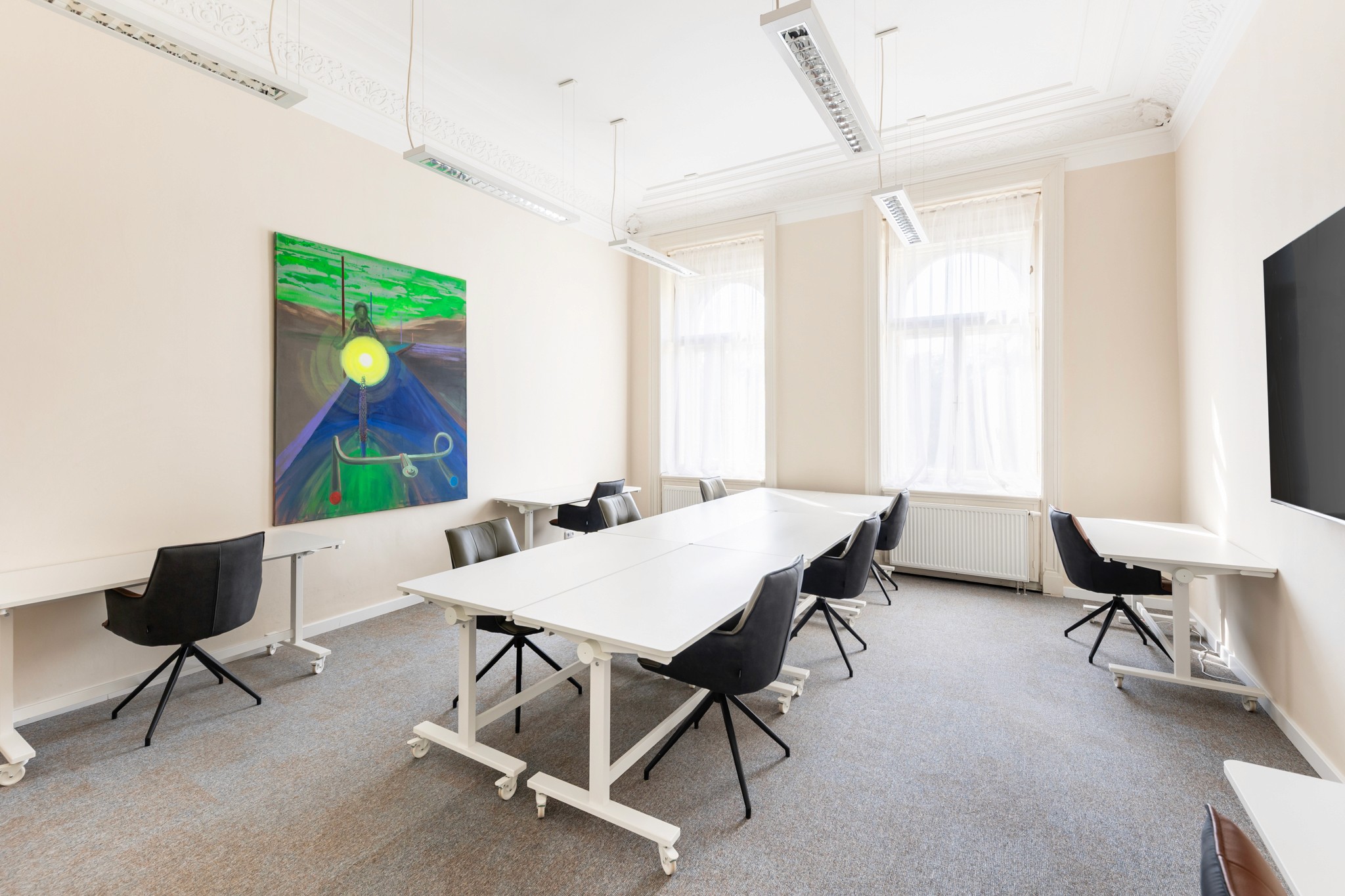 Všechny prostory jsou vybavené a připravené k okamžitému využití. Součástí nájmu je internet, pravidelný úklid a občerstvení (káva, čaj). Všechny služby a energie jsou zahrnuty v ceně – neplatíte nic navíc.